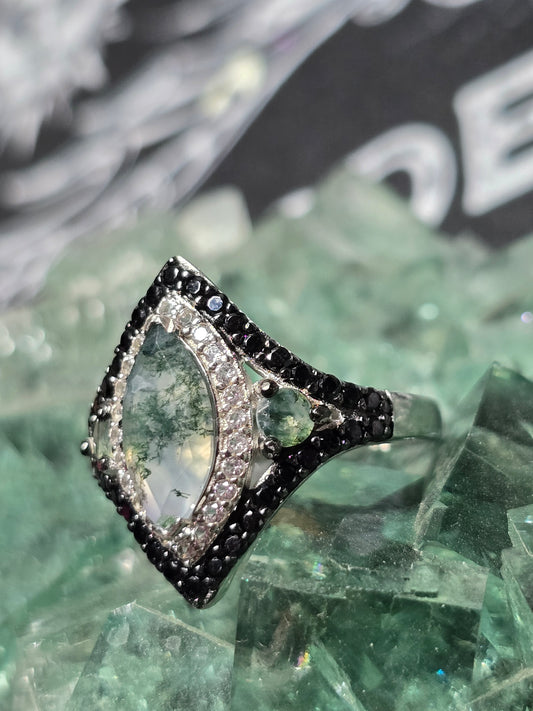 Sold outSize 8 moss agate & black spinel