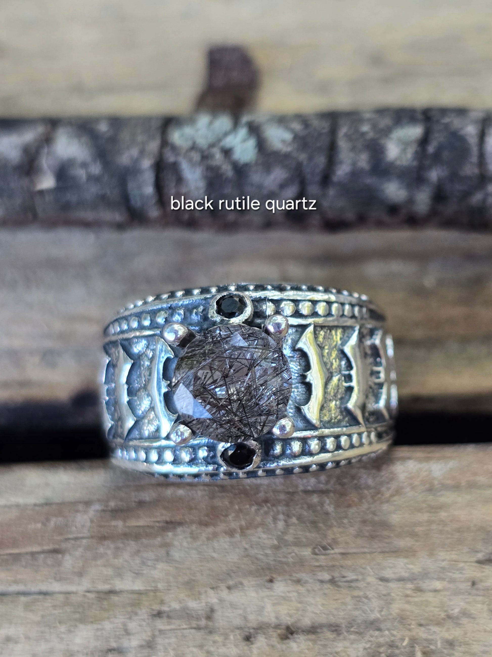 This badaxx band is one of the SG&J exclusives, you can only find here! It is oxidized 925 sterling silver. The 2 accent stones are black spinel.
